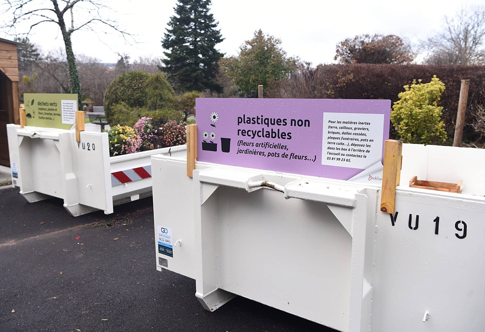 Pour cela, les cimetières disposent de bennes et de poubelles destinées à la collecte des déchets spécifiques, facilement reconnaissables grâce à une signalétique claire.