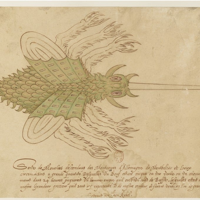 Un dessin de Jean II Rabel, peintre, graveur et éditeur à succès sous les derniers Valois, montre une étrange mouche. Une inscription indique qu’il s’agit d’une espèce venue de Montbéliard. Observation naturaliste ou prodige à interpréter, alors que Montbéliard, qui accueille de nombreux exilés protestants français, a été attaquée par les Guise en 1587-88 ? Nous mènerons l’enquête.