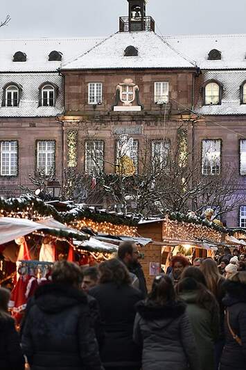 A la tombée de la nuit, le centre-ville de Montbéliard s’illumine… Des milliers de motifs en arches, pyramides et autres festons habillent les ruelles, les places et colorent les façades de la Cité des Princes. Blotti au pied du temple Saint-Martin, son marché de Noël est des plus authentiques grâce à la présence des artisans producteurs, sélectionnés avec grand soin… Rendez-vous du 22 novembre au 24 décembre 2025 pour la 39e édition des Lumières de Noël !