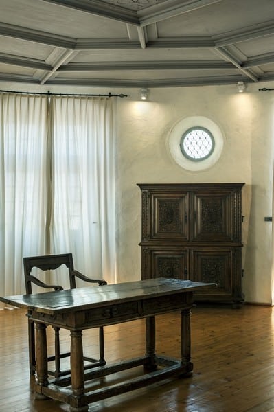 Erudit en phase avec le bouillonnement culturel de la Renaissance, le duc Frédéric Ier de Wurtemberg (1557-1608) attire à Montbéliard intellectuels, scientifiques et artistes talentueux. Il impose dans tout le duché la religion luthérienne comme religion d’Etat. Exposés dans la salle du poêle d’audience, les bassins de Mars et de la Tempérance de l’orfèvre montbéliardais, François Briot, et le buffet sculpté par Jérémie Carlin témoignent de cette période remarquable.